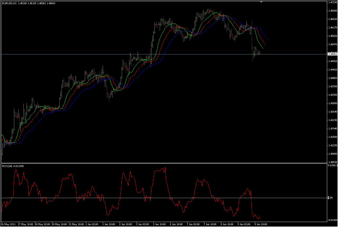 El Rate of Change es bastante similar al Momentum, ya que también mide la fuerza de una tendencia. La única diferencia es que el Rate of Change o Tasa de Cambio se calcula de manera diferente. Este divide el precio de hoy por un precio pasado. Si el ROC gana o pierde velocidad rápidamente, la tendencia se acelerará la mayoría de las veces. Este es un destacado indicador, que usualmente alcanza un pico antes que el precio llegue a su máximo y alcanza un suelo antes que el precio llegue a su mínimo.